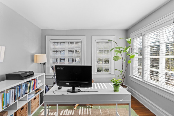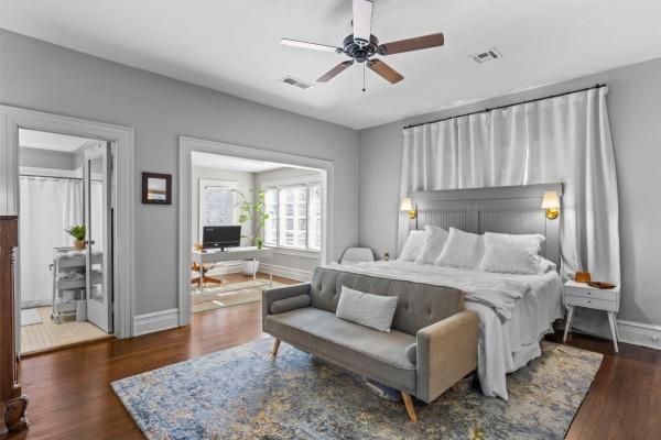The recently renovated kitchen boasts high-end appliances and thoughtful design, while the newly updated bathroom offers a spa-like retreat. The primary suite includes an adjoining office or nursery, providing flexibility to meet your lifestyle needs.