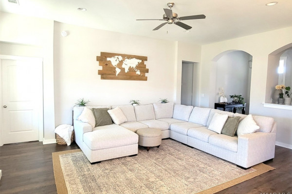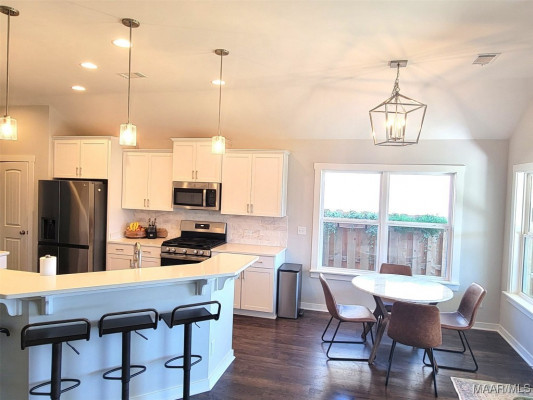 Available May 22, 2026. Welcome home to this beautiful 4-bedroom, 2-bath split floor plan residence located in the quiet, friendly, and highly sought-after Hedgefield subdivision in Prattville. Conveniently situated near shopping, restaurants, churches, and the interstate, this home offers both comfort and accessibility, approximately 8.5 miles to Maxwell AFB. This home is warm and inviting, featuring luxurious plank flooring that flows seamlessly through the main living areas. The front dining room, accented by an open archway to the living room, is perfect for family meals or can easily serve as a flexible space for a home office, homeschool area, playroom, or sitting room. The kitchen is a standout with gorgeous quartz countertops, soft-close cabinetry, stainless steel appliances, a pantry, an eat-in area, and a spacious gathering bar. The living room offers generous space and abundant natural light from windows overlooking the covered back patio, creating a cozy and welcoming family environment. This home is a split floor plan; The primary suite features great natural lighting and a walk-in closet. The primary bathroom includes a double sink vanity with quartz countertops and soft-close cabinets, with a separate walk-in tiled shower, a relaxing garden tub, a private water closet, and a second walk-in closet, making it your own private oasis. On the opposite side of the home are three additional nicely sized bedrooms, a linen closet, and a full bathroom. The utility room is conveniently located near the garage entry. The fully fenced backyard is perfect for outdoor relaxation and entertaining under the covered patio. A 2- car garage provides ample parking and storage. The Hedgefield neighborhood also features a scenic community pond and walking trail. EST SERVICE IS INCLUDED. Check with your local school district for school zoning information. NO SMOKING or VAPING IN PROPERTY OR GARAGE. This property DOES NOT ACCEPT Housing Vouchers