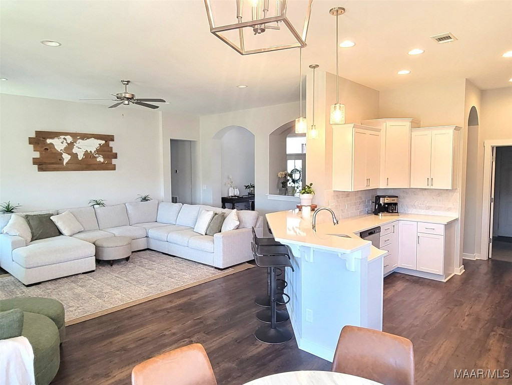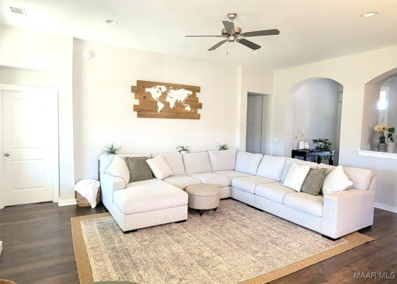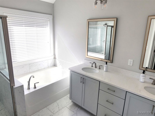 Available May 22, 2026. Welcome home to this beautiful 4-bedroom, 2-bath split floor plan residence located in the quiet, friendly, and highly sought-after Hedgefield subdivision in Prattville. Conveniently situated near shopping, restaurants, churches, and the interstate, this home offers both comfort and accessibility, approximately 8.5 miles to Maxwell AFB. This home is warm and inviting, featuring luxurious plank flooring that flows seamlessly through the main living areas. The front dining room, accented by an open archway to the living room, is perfect for family meals or can easily serve as a flexible space for a home office, homeschool area, playroom, or sitting room. The kitchen is a standout with gorgeous quartz countertops, soft-close cabinetry, stainless steel appliances, a pantry, an eat-in area, and a spacious gathering bar. The living room offers generous space and abundant natural light from windows overlooking the covered back patio, creating a cozy and welcoming family environment. This home is a split floor plan; The primary suite features great natural lighting and a walk-in closet. The primary bathroom includes a double sink vanity with quartz countertops and soft-close cabinets, with a separate walk-in tiled shower, a relaxing garden tub, a private water closet, and a second walk-in closet, making it your own private oasis. On the opposite side of the home are three additional nicely sized bedrooms, a linen closet, and a full bathroom. The utility room is conveniently located near the garage entry. The fully fenced backyard is perfect for outdoor relaxation and entertaining under the covered patio. A 2- car garage provides ample parking and storage. The Hedgefield neighborhood also features a scenic community pond and walking trail. EST SERVICE IS INCLUDED. Check with your local school district for school zoning information. NO SMOKING or VAPING IN PROPERTY OR GARAGE. This property DOES NOT ACCEPT Housing Vouchers