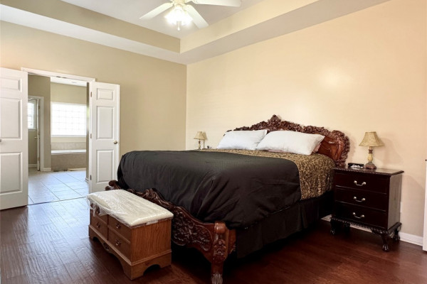 Welcome to this beautiful well-maintained home in the sought after Deer Creek neighborhood! This home features a split floor plan that offers the perfect blend of privacy and space. On one side, you’ll find two bedrooms and a full bath and the opposite side there’s an additional bedroom, a full bath and the primary suite—complete with a walk-in closet, an additional closet for extra storage, and an en-suite bath. Primary bath has his and her vanities, a garden tub and walk-in shower. The formal dining room is perfect for entertaining, while the breakfast area provides a cozy spot for everyday meals. The kitchen boasts granite countertops, stainless steel appliances, and ample cabinet space. Living room has a fireplace with immaculate laminate hardwood floors that flow throughout the home. Privacy fenced back yard with patio. Landlord will provide pest control, Trugreen weed control, and termite bond in place. This home is partially furnished. Tenant is responsible for all utilities, lawn maintenance, and complying with all HOA rules and regulations. Tenant responsible for one time tenant transfer fee to HOA. Schedule your showing! AVAILABLE JANUARY!