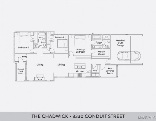 The Chadwick offers the ease and convenience of single-story living, making it a favorite among Hampstead buyers. With charming curb appeal and a smart layout, this home blends low-maintenance living with thoughtful design. Inside, you’ll find a vaulted-ceiling living room with fireplace, spacious dining area, and a beautiful kitchen perfect for entertaining. The home features three bedrooms, including a privately situated primary suite at the rear with a large walk-in closet, double vanity, soaking tub, and a frameless glass walk-in shower. Enjoy outdoor living with a covered front porch, private courtyard, and covered back porch. The attached 2-car garage adds convenience and additional storage.Hampstead is an International Award-Winning Community. Live in a walkable, vibrant neighborhood filled with amenities for every lifestyle: