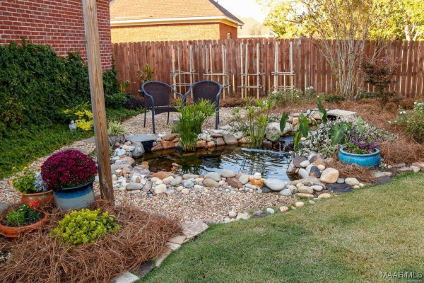 This is a custom built home. This wonderful 4 Bedroom, 2 1/2 Bath Home is located in a quiet cul-de-sac in the desirable Sturbridge neighborhood. It is well appointed with granite countertops, stainless steel Kitchen Aid appliances, HVAC units with a programmable thermostat, and gas logs. The floor plan is very open with tall ceilings, detailed crown molding, and a warm, welcoming set-up throughout. Home was updated in 2020 with 6-inch Mohawk flooring. This home has a large formal dining room with arched windows and is great for family gatherings. The kitchen is a gourmet’s dream with tons of cabinets and counter space, a huge work island, breakfast bar, breakfast dining, and tall ceilings. There is also a laundry room that is large enough for not only the washer and dryer but can also hold a freezer or extra pantry needs. The Master Suite is a soothing and comfortable room with plenty of space, a tall boxed in ceiling, more crown molding, beautiful trim work, and a huge walk-in closet. The suite also includes a nice-sized bathroom with a double vanity, garden tub, and separate shower. The backyard is a quiet and peaceful retreat that includes a water feature. Additional features include lush landscaping, a privacy fence, and a covered patio. There is also an oversized two car garage and an added extra parking pad.