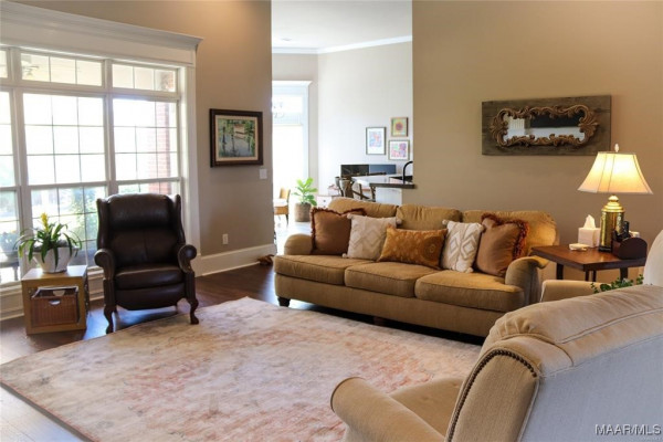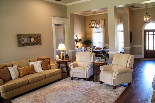 This is a custom built home. This wonderful 4 Bedroom, 2 1/2 Bath Home is located in a quiet cul-de-sac in the desirable Sturbridge neighborhood. It is well appointed with granite countertops, stainless steel Kitchen Aid appliances, HVAC units with a programmable thermostat, and gas logs. The floor plan is very open with tall ceilings, detailed crown molding, and a warm, welcoming set-up throughout. Home was updated in 2020 with 6-inch Mohawk flooring. This home has a large formal dining room with arched windows and is great for family gatherings. The kitchen is a gourmet’s dream with tons of cabinets and counter space, a huge work island, breakfast bar, breakfast dining, and tall ceilings. There is also a laundry room that is large enough for not only the washer and dryer but can also hold a freezer or extra pantry needs. The Master Suite is a soothing and comfortable room with plenty of space, a tall boxed in ceiling, more crown molding, beautiful trim work, and a huge walk-in closet. The suite also includes a nice-sized bathroom with a double vanity, garden tub, and separate shower. The backyard is a quiet and peaceful retreat that includes a water feature. Additional features include lush landscaping, a privacy fence, and a covered patio. There is also an oversized two car garage and an added extra parking pad.