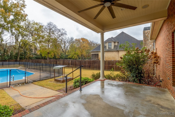 Discover this Wyndridge beauty & indulge in luxury living! This elegant 4-bedroom, 4.5-bath home, features a captivating saltwater pool & a bonus/theatre room! The kitchen has been professionally renovated adding quartz countertops, under-cabinet lighting and beautiful stainless steel appliances. All of the 4 bedrooms have a private, en suite bath & walk in closet. As you enter the home, you are drawn to the high ceilings, natural light & huge entry way. The great room is spacious & complete with built-ins & beautiful views of the backyard. The dining room is classic and makes the perfect spot to celebrate special occasions & family dinners. The breakfast room is oversized and even has room for a sitting area. French doors lead to a versatile room on the front of the home that could be used as a living room, study or office. Downstairs you will find the main bedroom as well as an additional guest bedroom with its own en suite bath. Upstairs there are 2 additional bedrooms, both with built-in desks, en suite baths, and huge closets! The bonus room upstairs provides a family theatre room or a playroom for the kids. Escape to your own private paradise in the backyard where you will find a covered patio overlooking the saltwater pool that has a new pump & Polaris pool cleaner & a new, removable fence. Enjoy the convenience of a spacious, 2 car garage providing secure parking and additional storage as well as a new electric charging station. The current owners have meticulousy made improvements to the home by replacing 2 of the 3 HVAC systems, new ceiling fans, new lighting fixtures, gas water heater, & new french drains around the pool. This home is located in a peaceful, gated, neighborhood and is within walking distance to the tennis/pickleball courts, fountains and gazebo. Home is leased until June 15, 2026 to an officer at the Maxwell Air War College for $3500 a month. Purchaser can still buy the home & receive the rental income until the lease expires.