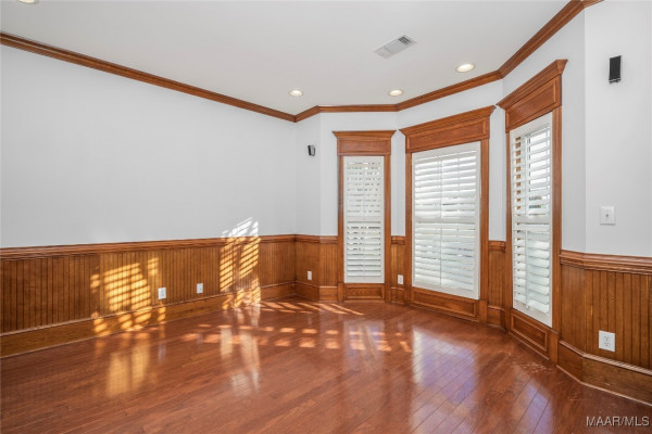 Off the formal foyer, you’ll find a formal dining room perfect for hosting guests. The primary suite includes a spacious sitting area and a huge walk-in closet, while the ensuite bath offers double vanities, a garden tub, and a separate shower. Two additional bedrooms share a full bath, and there is a separate half bath conveniently located for guests.