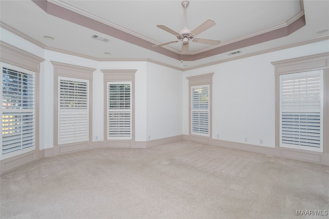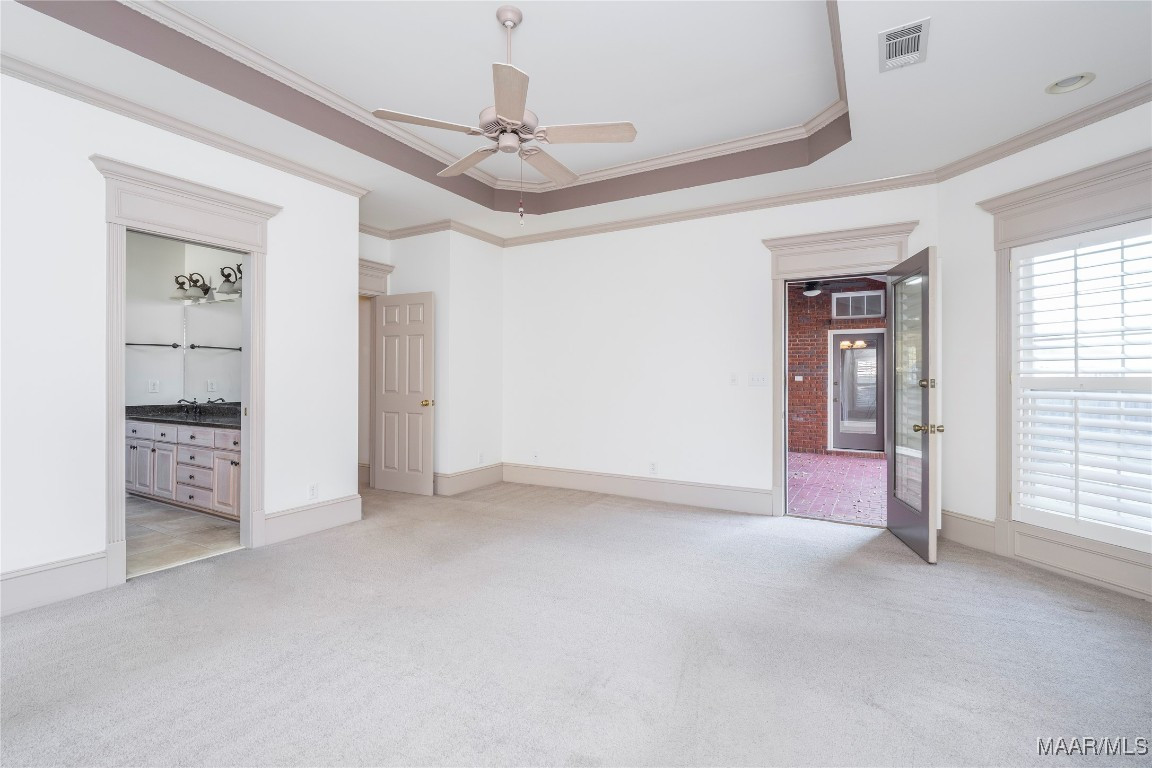 Off the formal foyer, you’ll find a formal dining room perfect for hosting guests. The primary suite includes a spacious sitting area and a huge walk-in closet, while the ensuite bath offers double vanities, a garden tub, and a separate shower. Two additional bedrooms share a full bath, and there is a separate half bath conveniently located for guests.