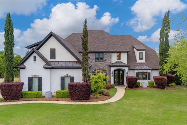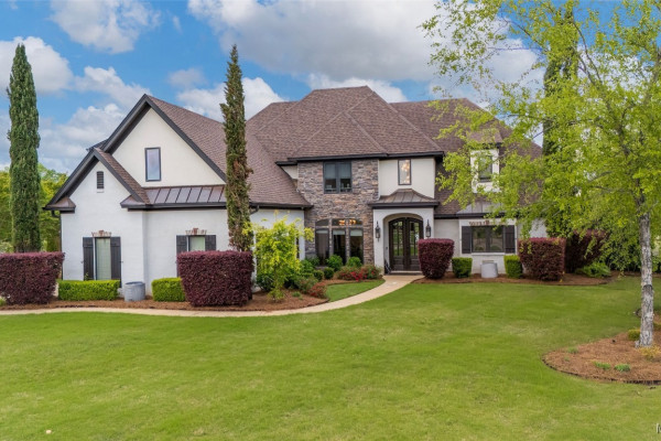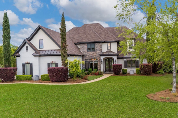 The main level includes a luxurious master suite and a private guest suite with full bath. Upstairs offers two bedrooms, two full baths, a built-in workstation, a spacious bonus room with kitchenette, and walk-in attic storage.