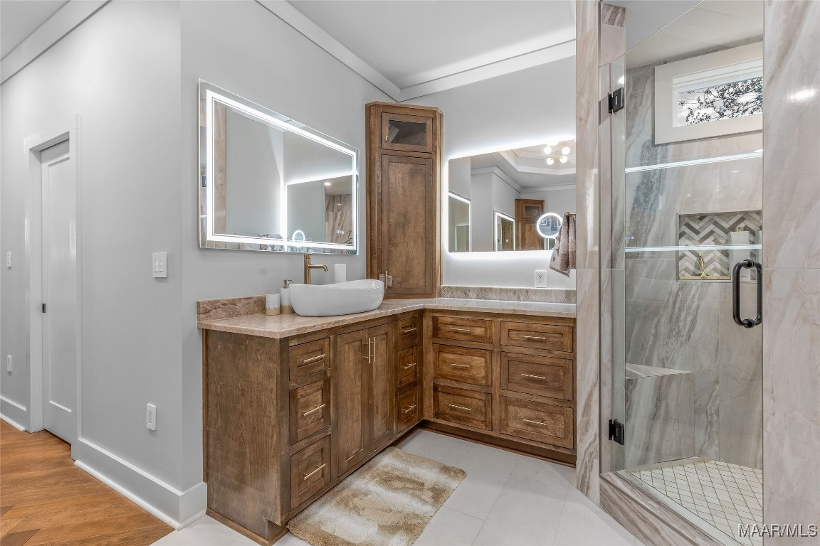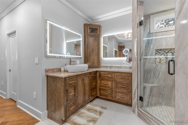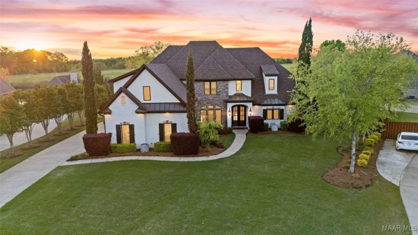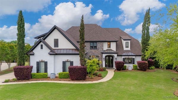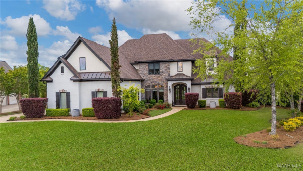 The main level includes a luxurious master suite and a private guest suite with full bath. Upstairs offers two bedrooms, two full baths, a built-in workstation, a spacious bonus room with kitchenette, and walk-in attic storage.