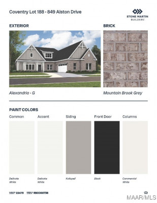 Special incentives available (Please see agent for details and subject to change).The Alexandria blends classic design with modern functionality, all on a single level. A formal dining room and flexible front room create a welcoming entry, perfect for entertaining or everyday use. The open-concept layout connects the great room and kitchen under soaring ceilings, enhancing natural light and flow. The private main suite features a spacious layout, dual vanities, a garden tub, and tiled shower. Secondary bedrooms offer room to grow, gather, or unwind—ideal for today’s dynamic lifestyles.