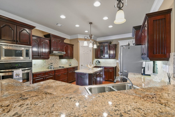 BRING YOUR FISHING POLE and PEDAL or JON BOAT! This ONE OWNER WATERFRONT masterpiece in the prestigious Rockbridge community of Sturbridge offers unparalleled luxury & tranquility, all just minutes to shopping, dining, & hospitals. This custom-built Legacy Home with over 3,400 sq ft of sophisticated design and craftsmanship. The grand 2-story foyer, illuminated by a striking chandelier, welcomes you with a sense of grandeur. Throughout the home, high-end woodworking-including intricate trim, crown molding, and elegant finishes-elevate every space. The formal dining room offers a refined setting for entertaining. The living room features 14-ft ceilings, creating an open & airy ambiance that’s perfect for everyday living and hosting guests. The kitchen combines beauty and functionality with luxury cabinetry & granite countertops. The breakfast area and cozy family room with a fireplace, overlook serene water views. The primary suite is a true sanctuary-trey ceilings featuring ambient lighting, an attached study/sitting room, and private access to the screened-in lanai. The primary bath features a jacuzzi tub, separate shower, and a massive walk-in closet. On this level, you’ll also find a guest bedroom and a full bath, perfect for privacy and ease. Upstairs are 3 additional bedrooms and a full bath. One could function as a game room, home theater, or office. Step outside to experience the home’s SUNROOM & screened-in LANAI, with an OUTDOOR FIREPLACE & KITCHEN, adding over 800 sq ft of additional living space, ideal for year-round entertaining. The meticulously landscaped backyard features a fountain and stunning WATER VIEWS, creating the perfect backdrop for your peaceful retreat. The INVISIBLE DOG FENCE provides convenience without disrupting views. Amenities, include a clubhouse, pool, fitness center, tennis/pickleball courts, playground, trails, and lakes. Luxury, serenity, & convenience come together seamlessly in this stunning home. HVAC is only 4-5 YEARS OLD!