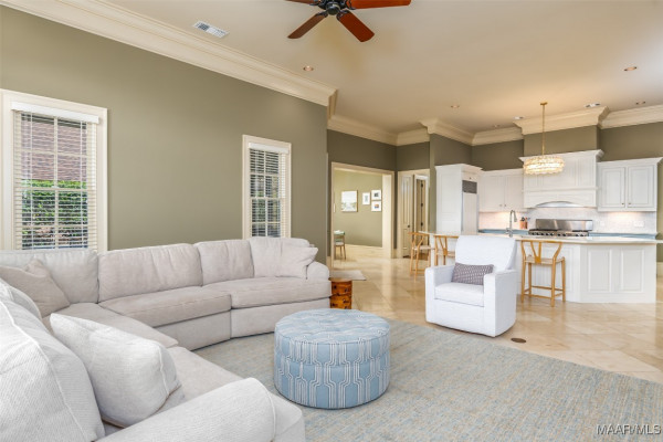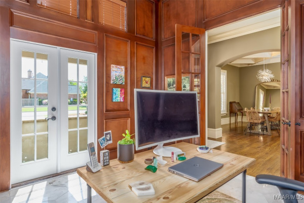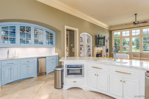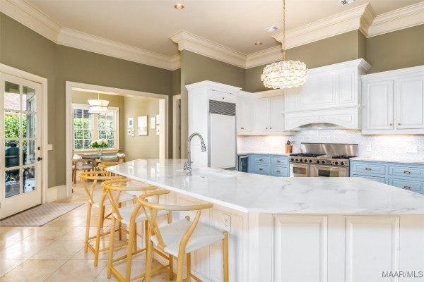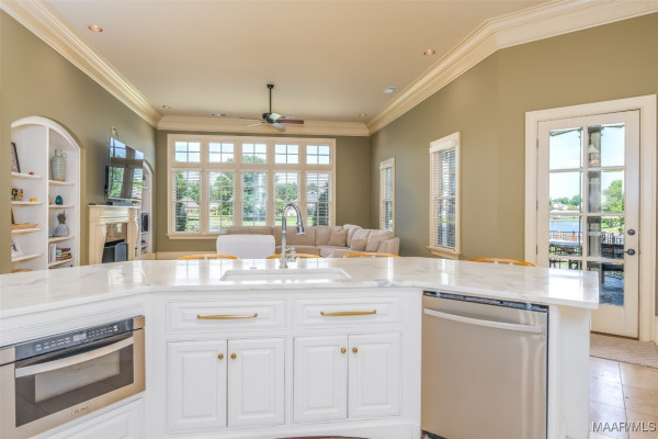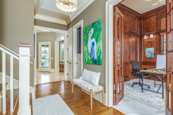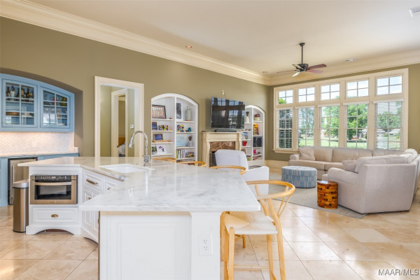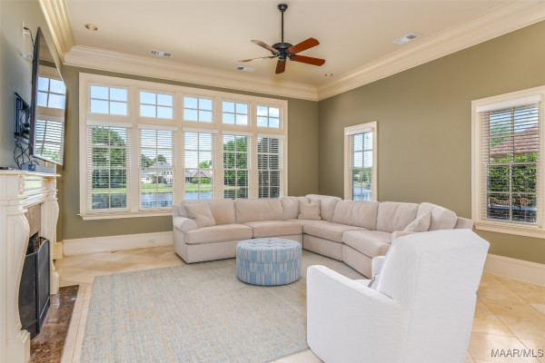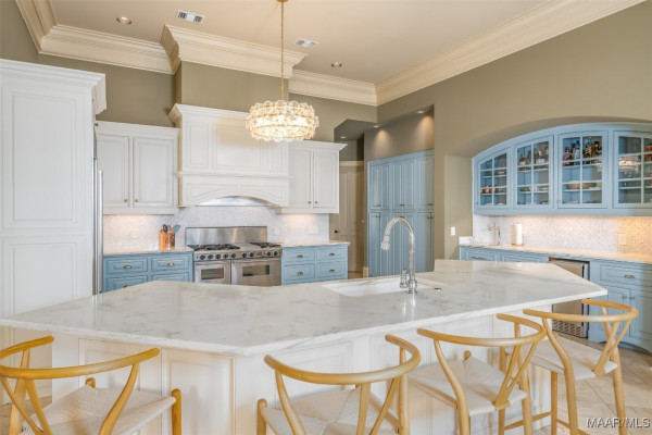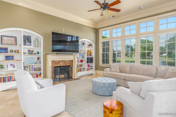 IMPROVED PRICE!! Stunning Waterfront home in Wynlakes on a gorgeous lot with views of the lake and fountain directly behind. Step in the front door and you’re immediately greeted with an open layout with formal dining just off the foyer and an elegant traditional wood-paneled wall office through French doors on the opposite side. Gorgeous Travertine floors lead into the main living area and pair perfectly with the warm timeless hardwood floors. The living room features a handsome fireplace flanked by built-in bookshelves on either side along with walls full of windows looking out at the backyard. The kitchen is just off the living room with an enormous island and an incredibly large breakfast nook or keeping room that is flooded with light from tons of windows. An oversized commercial style Five-Star gas range, built-in Sub-Zero refrigerator, built-in beverage cooler, brand new built-in ice maker, wet bar and counterspace galore, topped with gorgeous new tops, make this kitchen a chef’s dream. Past the kitchen, on the way to the garage, is a large laundry room with tons of cabinetry and a utility sink as well as a side door leading out to the driveway. The master suite, with its towering ceilings and windows with lake views, is absolutely luxurious. The master bath features a soaking tub, separate shower and long double vanity with custom cabinetry surrounds and large walk-in closet with even more custom cabinetry. Upstairs you’ll find 3 very nice sized bedrooms, a full bath and a great bonus room with an attached laundry that could easily convert to a full bath. Also upstairs is the perfect workout room, home office or hobby room. Out back is where you’ll find yourself unwinding at the end of a long day or spending time with family and friends on those glorious fall football Saturdays. The covered porch overlooking the backyard and lake with fountain is sure to be one of your favorite spots to enjoy spectacular sunrises and sunsets.