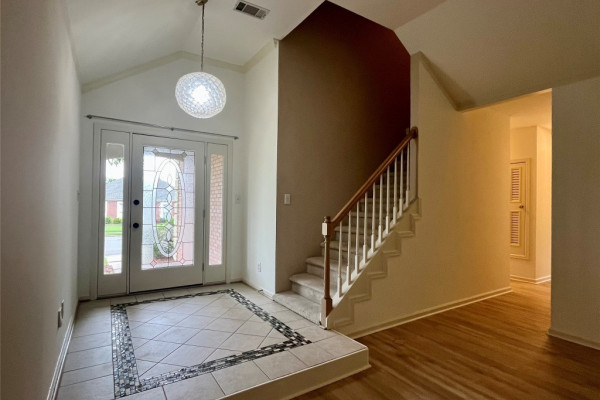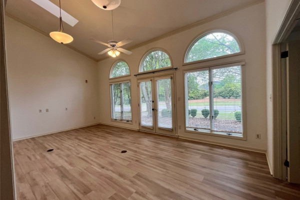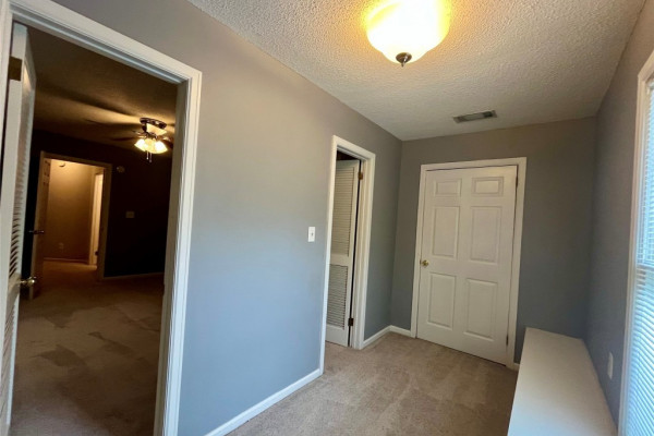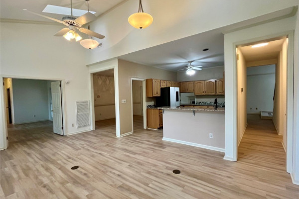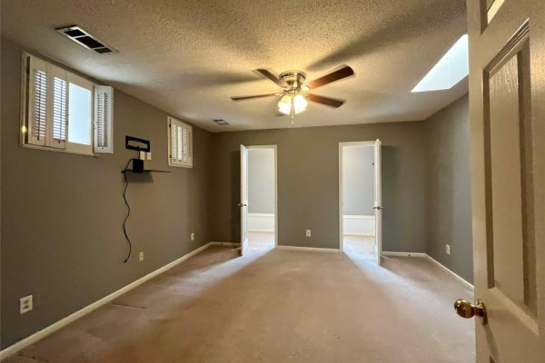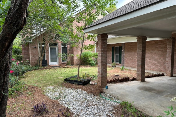 Spacious patio home sitting on a large corner lot featuring 3 bedrooms, 3 bathrooms, two large living spaces and an attached carport with a garage door and opener. The primary quarters are located on the first floor with extra large soaking tub and walk-in shower. A spare guest bedroom is located near the laundry room and guest bathroom. The upstairs features a large bedroom, with extra large closet space and a full bathroom and walk in closet.
