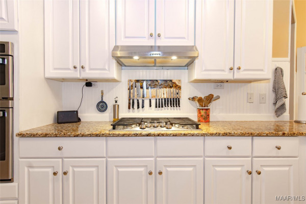 The kitchen boasts granite countertops, newer gas cooktop & vent, newer smooth-surface stove, and newer microwave/oven combo and refrigerator, making it perfect for everyday living and entertaining.