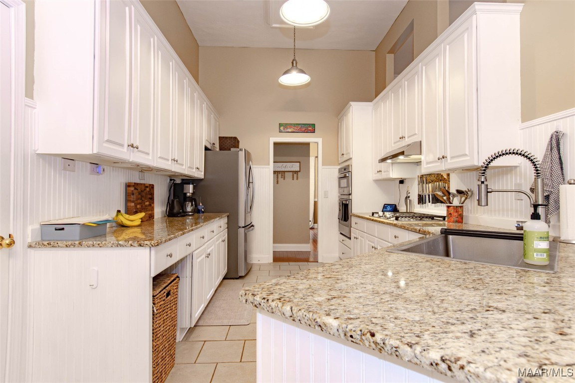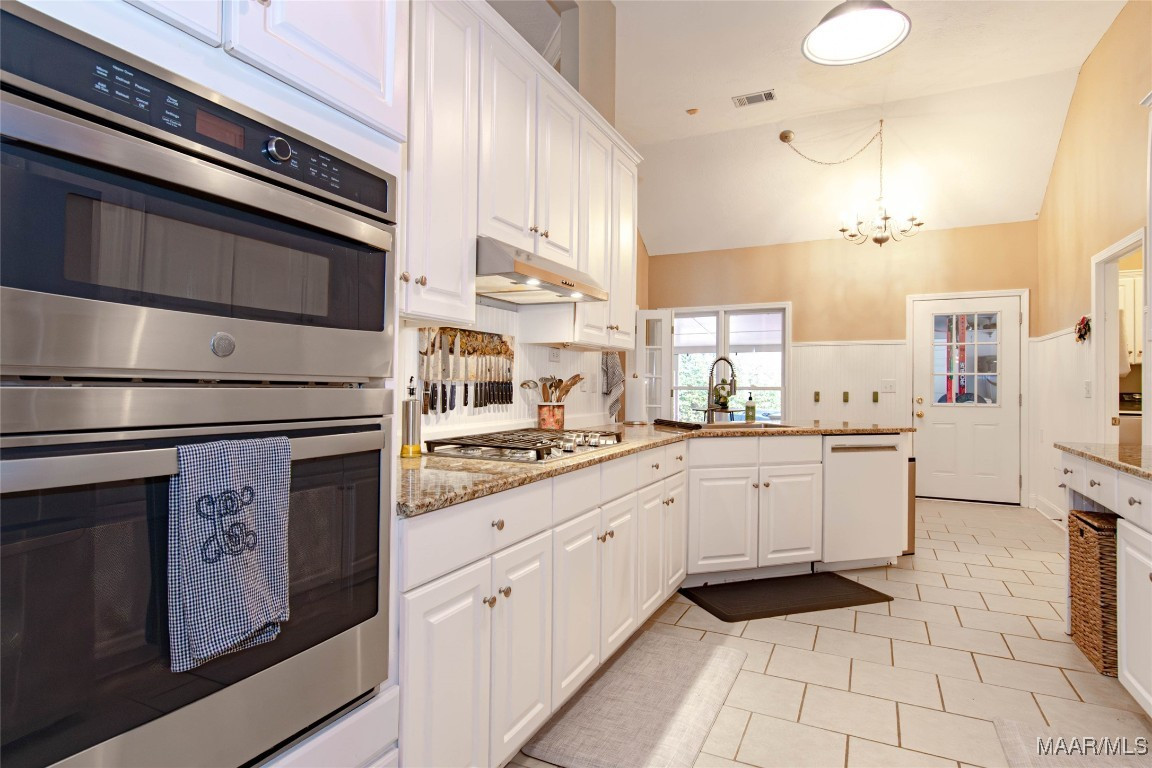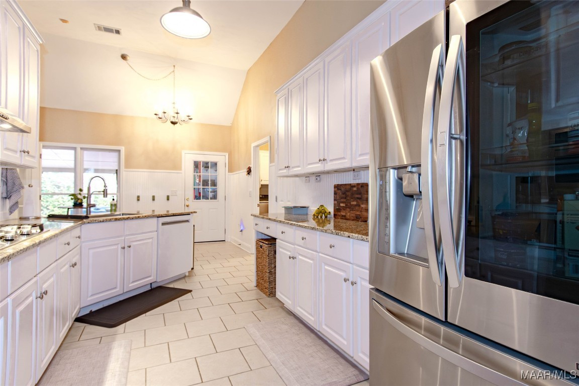 The kitchen boasts granite countertops, newer gas cooktop & vent, newer smooth-surface stove, and newer microwave/oven combo and refrigerator, making it perfect for everyday living and entertaining.