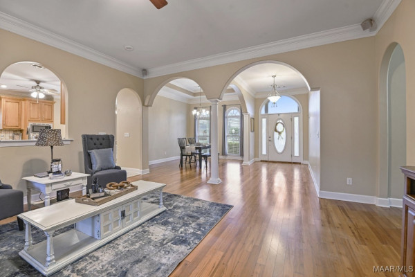 Beautiful home with 3 bedrooms PLUS an office in lovely Sturbridge Plantation! The location is great on a cul-de-sac with estate lots behind the home, There is hardwood flooring galore throughout the foyer, dining room, den and hall. The den features a cozy fireplace with gas logs! The spacious kitchen which includes a work island, breakfast nook and stainless appliances. The main suite is large with his and her closets, and the main bath with two vanities, a jetted tub and a separate shower. The room off the main suite makes a great office or nursery complete with hardwood flooring and a closet. The covered patio features a second fireplace which is the perfect setting for outside entertaining. Sturbridge Plantation offers amenities which include a neighborhood pool, tennis courts, clubhouse, walking paths, playground and fitness center.