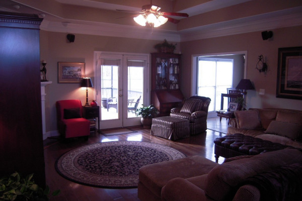 The inviting Family Room is perfect for entertaining, featuring a cozy fireplace and French doors that lead to a spacious screened-in patio designed for gatherings. The open, airy floor plan showcases trey ceilings in the Breakfast Room and Master Bedroom, plus a double trey ceiling in the Family Room.