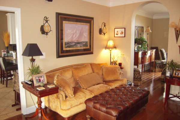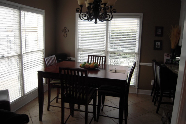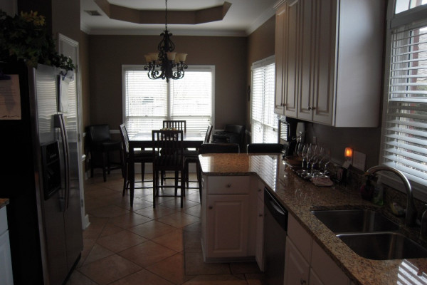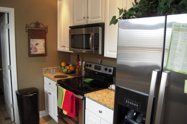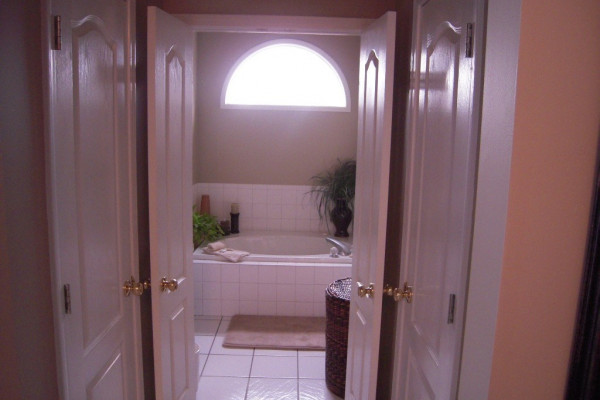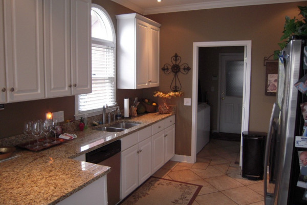 The Gourmet Kitchen is a chef’s dream with granite countertops, new stainless-steel appliances, and ceramic tile flooring. Architectural touches throughout include two archways in the Dining Area and another in the Master Bath, along with striking Palladium windows in the Dining Room, above the front door, and over the jetted tub in the Master Bath.