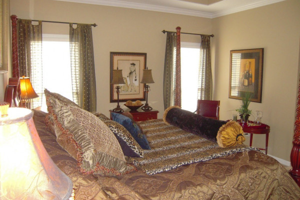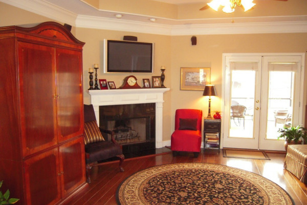 The luxurious Master Suite features a private sitting area with French doors, separate vanities in the Master Bath, and his-and-hers walk-in closets. Additional amenities include: