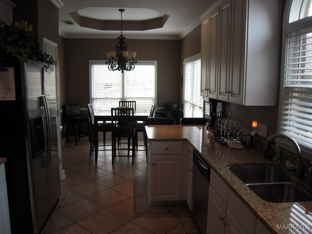 The Gourmet Kitchen is a chef’s dream with granite countertops, new stainless-steel appliances, and ceramic tile flooring. Architectural touches throughout include two archways in the Dining Area and another in the Master Bath, along with striking Palladium windows in the Dining Room, above the front door, and over the jetted tub in the Master Bath.
