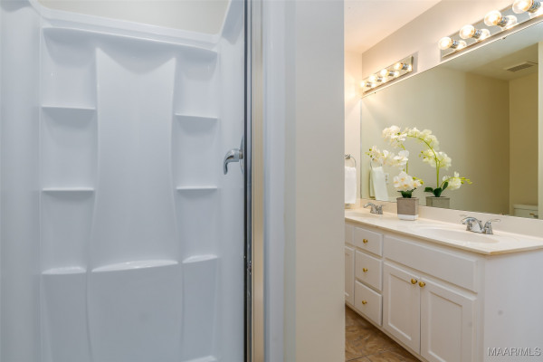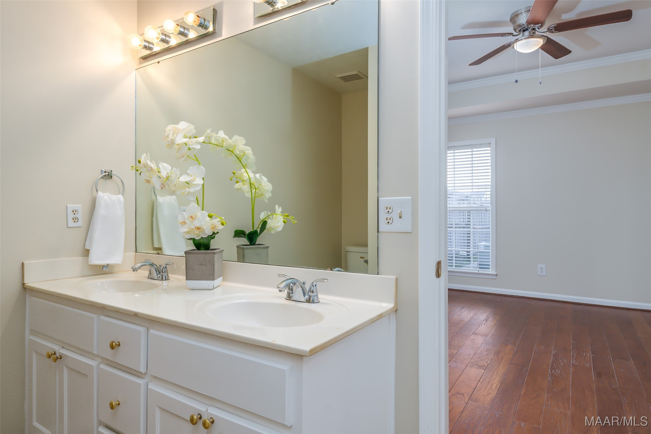 Backing up to the neighborhood walking trail & lake, this freshly painted home is one you will not want to miss! Wonderful floor plan with open great room with wood floors and fireplace, open dining room. Spacious master suite also features wood floors, and a walk in closet. New Shower door, soaking tub, & dual vanity. Bright breakfast room sits off the kitchen, kitchen features plantation shutters, great pantry, and even a desk to drop the mail and groceries at. Guest bedrooms feature new Luxury plank vinyl flooring.
