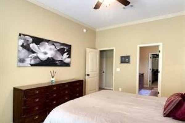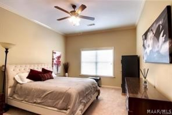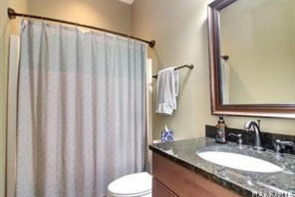 Downstairs. there are 2 bedrooms and a full bath on one side of the house and the other side is the master bedroom and bath. with separate tub and shower and large walk-in closet, double vanity and granite counter tops. The rooms are all nice sized and have 10 ft ceilings.