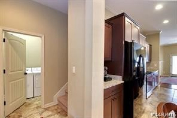 The eat-in kitchen has plenty of cabinet space , granite countertops and stainless steel appliances. Off the kitchen is the laundry room with pantry. This leads to garage entry on one side and the stairway on the other. The upstairs has a large bedroom/bonus room with 2 closets, linen closet and full bath.