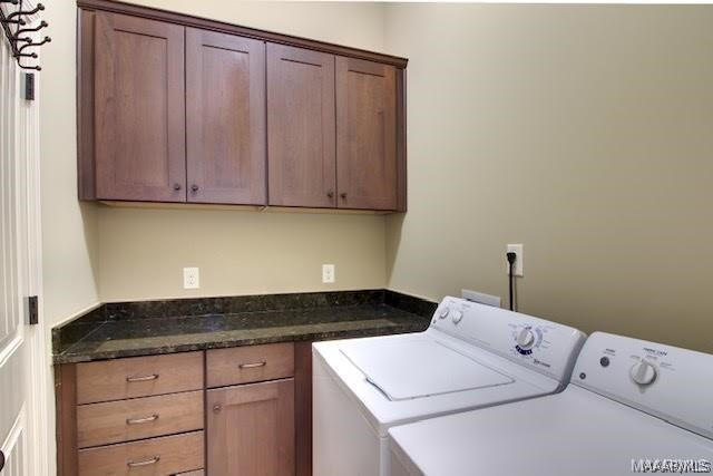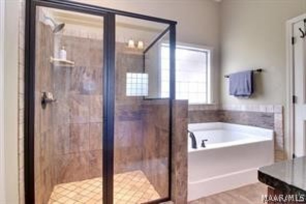 Downstairs. there are 2 bedrooms and a full bath on one side of the house and the other side is the master bedroom and bath. with separate tub and shower and large walk-in closet, double vanity and granite counter tops. The rooms are all nice sized and have 10 ft ceilings.
