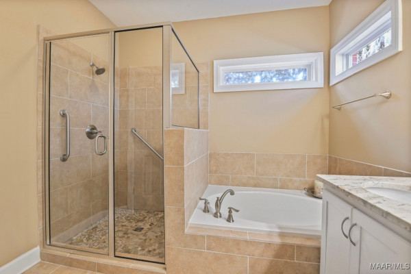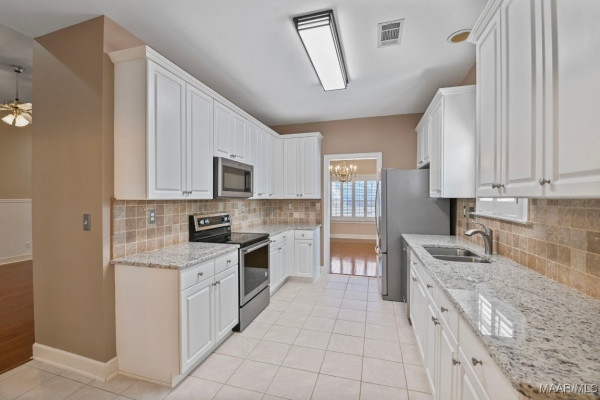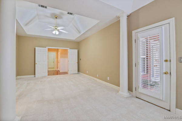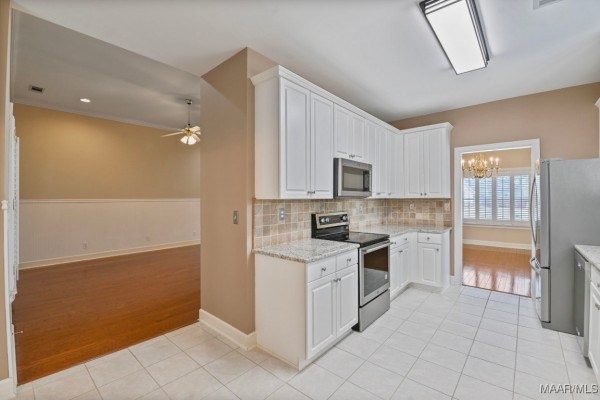WELCOME HOME to this well maintained, move in ready, 3 bedroom, 2 bath, 2020 sq. ft. home located on a quiet cul-de-sac in the highly sought after Deer Creek Neighborhood with outstanding amenities including a clubhouse, pools, tennis courts, a playground, fitness center, jogging trails and fishing pond. The open and airy floor plan is perfect for everyday living and entertaining, featuring plantation shutters throughout and gleaming wood floors and a cozy gas fireplace in the open great room where everyone will want to be. The dining room off of the kitchen has a tray ceiling and a great place for having family meals and making many memories. The kitchen is a true gathering space with granite countertops, tile backsplash, stainless steel appliances, lots of cabinet storage, a pantry, a designated workspace and a sunny breakfast nook. The large master bedroom has a tray ceiling with a fan and a large walk in closet and off of the master bedroom includes a sitting area with columns and an architectural octagonal ceiling which will become your favorite place to relax. The en suite bath offers a soaking tub, separate tiled walk in shower, double sinks and a private water closet. The split floor plan allows privacy for family members or guests with two additional bedrooms with roomy closet space and a main bath that has a tub/shower combo with tile and double sinks. A functional laundry room with a utility sink and plenty of storage space for organization. Step outside to enjoy family time or quiet evenings in the screened in area, then onto the patio with a pergola overlooking a beautiful backyard perfect for children to play, space for your pets or relaxing after a long day! This home is close to Maxwell AFB, Maxwell AFB/Gunter Annex and close to shopping, restaurants, community/school sports, and recreational activities offered in the area! Make your appointment today to see this pristine property!
