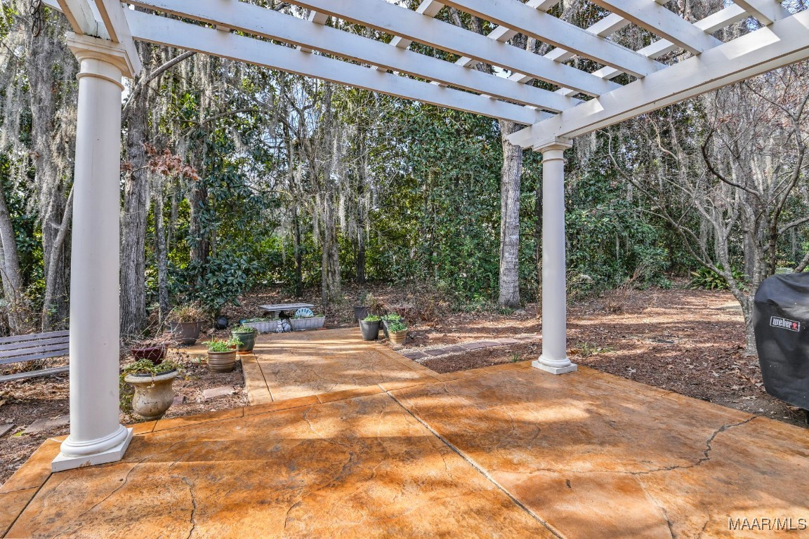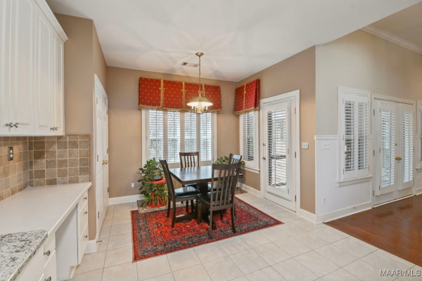 WELCOME HOME to this well maintained, move in ready, 3 bedroom, 2 bath, 2020 sq. ft. home located on a quiet cul-de-sac in the highly sought after Deer Creek Neighborhood with outstanding amenities including a clubhouse, pools, tennis courts, a playground, fitness center, jogging trails and fishing pond. The open and airy floor plan is perfect for everyday living and entertaining, featuring plantation shutters throughout and gleaming wood floors and a cozy gas fireplace in the open great room where everyone will want to be. The dining room off of the kitchen has a tray ceiling and a great place for having family meals and making many memories. The kitchen is a true gathering space with granite countertops, tile backsplash, stainless steel appliances, lots of cabinet storage, a pantry, a designated workspace and a sunny breakfast nook. The large master bedroom has a tray ceiling with a fan and a large walk in closet and off of the master bedroom includes a sitting area with columns and an architectural octagonal ceiling which will become your favorite place to relax. The en suite bath offers a soaking tub, separate tiled walk in shower, double sinks and a private water closet. The split floor plan allows privacy for family members or guests with two additional bedrooms with roomy closet space and a main bath that has a tub/shower combo with tile and double sinks. A functional laundry room with a utility sink and plenty of storage space for organization. Step outside to enjoy family time or quiet evenings in the screened in area, then onto the patio with a pergola overlooking a beautiful backyard perfect for children to play, space for your pets or relaxing after a long day! This home is close to Maxwell AFB, Maxwell AFB/Gunter Annex and close to shopping, restaurants, community/school sports, and recreational activities offered in the area! Make your appointment today to see this pristine property!
