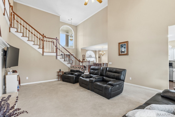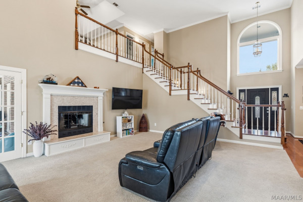 TOWNE LAKE BEAUTY on the coveted Green Chase Drive with stunning, tranquil lake views from nearly every window in the home. The main-level primary suite offers a private retreat, complete with a charming sunroom that also connects to the spacious great room. The great room features a fireplace with gas access (no gas logs currently installed). You’ll also find a formal dining room alongside a generously sized breakfast area—perfect for both everyday living and entertaining. Step outside to the covered back porch, an ideal spot to unwind or host gatherings with family and friends and fish from the beautiful pond or just enjoy the nature. Upstairs, there are two additional bedrooms, a full bath, and an open loft area that works beautifully as an office or bonus space. The upper level also provides access to a private balcony, adding yet another place to enjoy the peaceful surroundings. Abundant windows fill the home with natural light while showcasing the water views throughout. Towne Lake is conveniently located just off Interstate I-85 and is so close to The Shoppes of Eastchase, restaurants, hospitals, schools, churches and only minutes to Maxwell and Gunter Air Force Bases OPEN HOUSE SUNDAY, MARCH 22, FROM 2:00-4:00 PM!