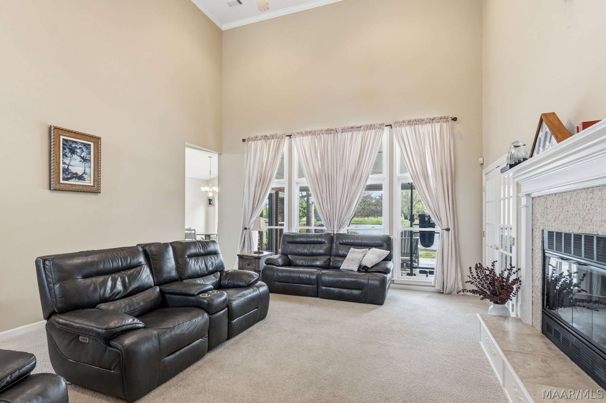 TOWNE LAKE BEAUTY on the coveted Green Chase Drive with stunning, tranquil lake views from nearly every window in the home. The main-level primary suite offers a private retreat, complete with a charming sunroom that also connects to the spacious great room. The great room features a fireplace with gas access (no gas logs currently installed). You’ll also find a formal dining room alongside a generously sized breakfast area—perfect for both everyday living and entertaining. Step outside to the covered back porch, an ideal spot to unwind or host gatherings with family and friends and fish from the beautiful pond or just enjoy the nature. Upstairs, there are two additional bedrooms, a full bath, and an open loft area that works beautifully as an office or bonus space. The upper level also provides access to a private balcony, adding yet another place to enjoy the peaceful surroundings. Abundant windows fill the home with natural light while showcasing the water views throughout. Towne Lake is conveniently located just off Interstate I-85 and is so close to The Shoppes of Eastchase, restaurants, hospitals, schools, churches and only minutes to Maxwell and Gunter Air Force Bases OPEN HOUSE SUNDAY, MARCH 22, FROM 2:00-4:00 PM!