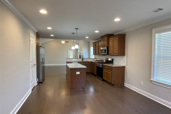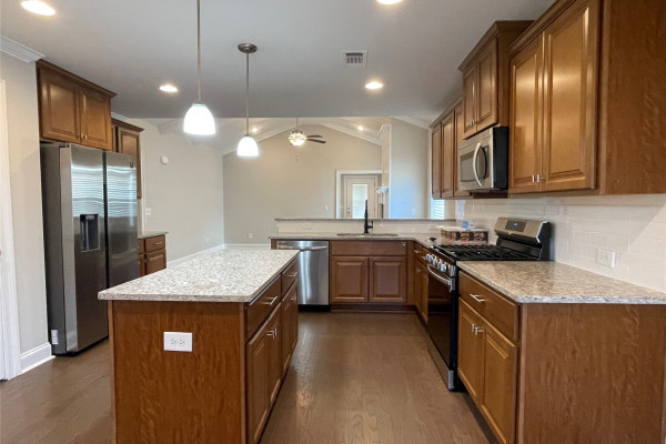 This home is perfect for comfortable living and entertaining. This home features an elegant foyer that leads into an open-concept kitchen, dining area, and spacious great room—ideal for hosting gatherings or enjoying cozy nights in. The kitchen is a standout with its built-in appliances, large island, and ample counter space, making meal prep and entertaining a delight. The luxurious master suite offers a generously sized bedroom, a walk-in closet, and a private bathroom complete with a double granite vanity. For added convenience, the attached garage opens directly into the laundry room, ensuring your home stays clean and organized. Situated in a desirable location, this rental is perfect for those looking for style, comfort, and practicality.