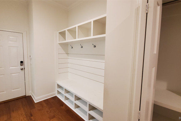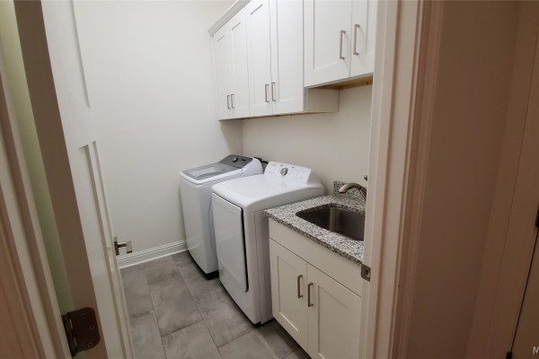 Functional spaces are just as impressive, including a well-equipped laundry room with cabinet storage and utility sink, and a mudroom featuring a drop-zone bench and double storage closets.