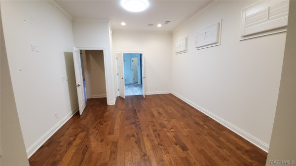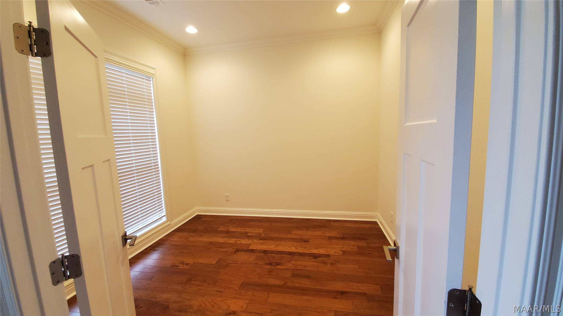 The elegant primary suite offers a private sitting area and a luxurious en-suite bath complete with a freestanding soaking tub, large frameless glass shower, double vanities, and an oversized walk-in closet. Additional living spaces include a dining room with built-in pocket doors that can easily serve as a flex space, a dedicated study or home office with double doors, a convenient half bath for guests, and a guest bedroom with access to a private bath.