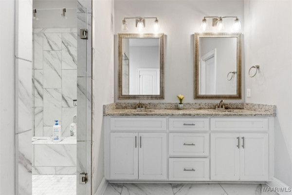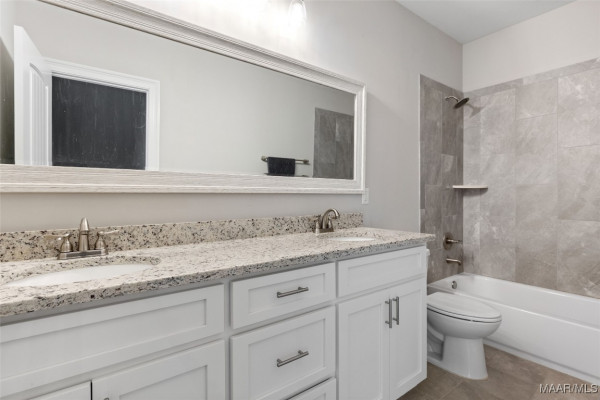 The spacious primary suite is located on the main level and offers a spa-like bath with dual vanities, a garden tub, separate shower, and a generous walk-in closet. Another bedroom and full bath are also located downstairs, providing excellent convenience for guests or multigenerational living. Upstairs, you’ll find two additional bedrooms and a full bathroom.