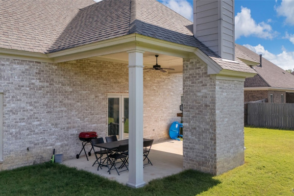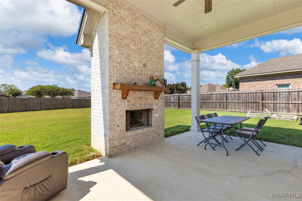 Built with comfort and efficiency in mind, this home includes spray foam insulation for superior energy savings. Outdoor living is just as impressive with a covered patio and a built-in outdoor fireplace overlooking the fully fenced backyard, creating the ideal setting for entertaining or relaxing evenings at home.