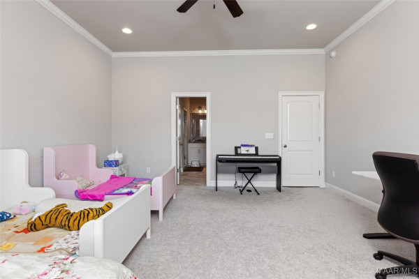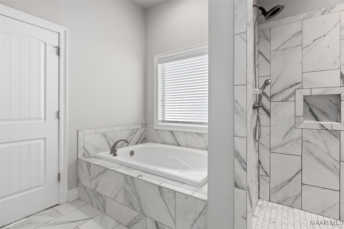 The spacious primary suite is located on the main level and offers a spa-like bath with dual vanities, a garden tub, separate shower, and a generous walk-in closet. Another bedroom and full bath are also located downstairs, providing excellent convenience for guests or multigenerational living. Upstairs, you’ll find two additional bedrooms and a full bathroom.