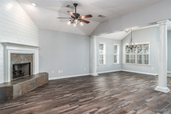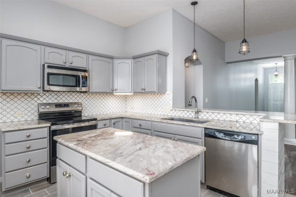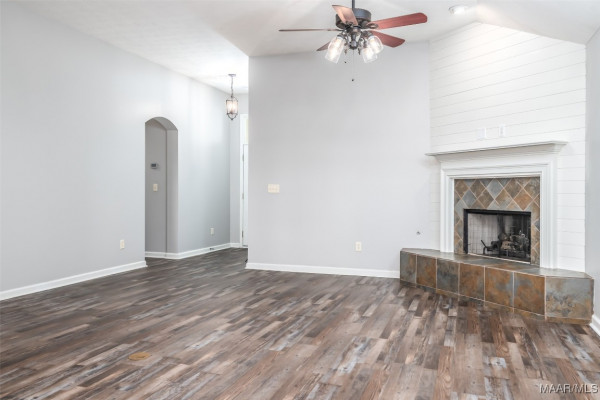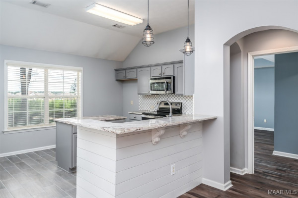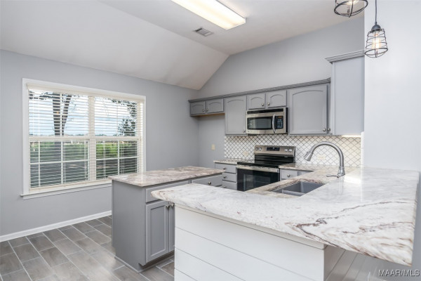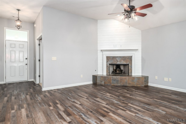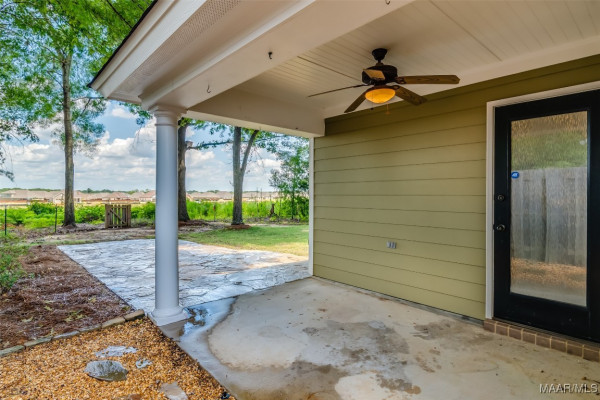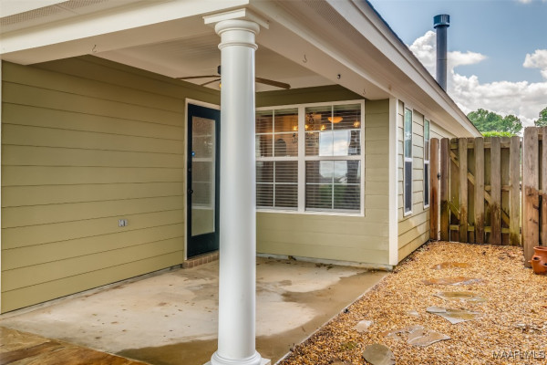 Welcome to this beautifully updated 4 bedroom, 2 bath home located in the highly sought-after Woodland Creek neighborhood, zoned for the award winning Pike Road school system. This stunning property features an open floor plan that flows seamlessly from room to room, perfect for both entertaining and every day living. The kitchen is a true showstopper, boasting new granite countertops, new shiplap accents, new tile flooring, a new stove, and all stainless steel appliances. A breakfast bar overlooks the dining and living room area, making it easy to stay connected with guests or family while preparing meals. The living and dining areas feature beautiful luxury vinyl plank flooring along with a gas fireplace flanked with shiplap accents. The main bedroom suite offers a relaxing retreat with a large soaking tub, separate shower, double sinks, and plenty of space to unwind. Another update is the brand new roof in 2024. Step outside to a covered porch complete with a ceiling fan and a beautiful flagstone patio just beyond that was also added by the owners. The private back yard is perfect for enjoying the outdoors while taking in the pretty views and enjoyment of having no one directly behind you. Woodland Creek offers an unbeatable lifestyle with top-notch amenities including a clubhouse, swimming pool, a fitness center, dog park, and two fun-filled playgrounds for the kids. Don’t miss your chance to own this great home in one of Pike Road’s more desirable neighborhoods!