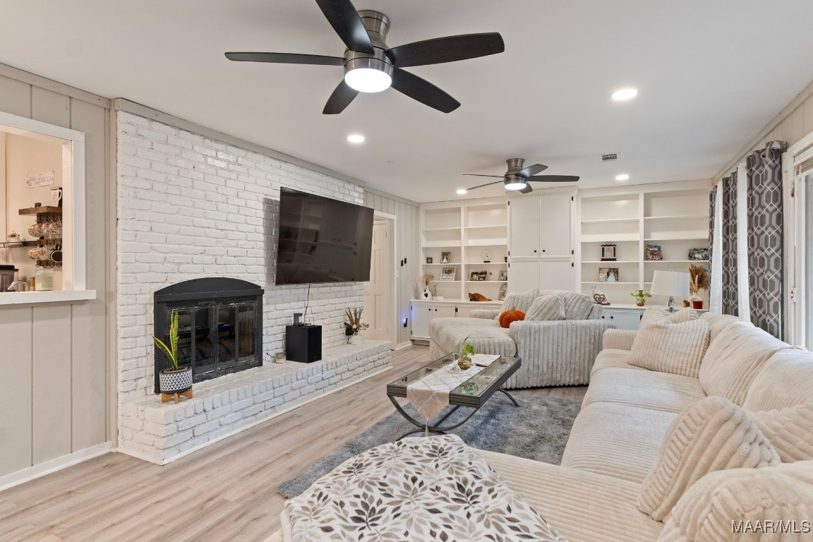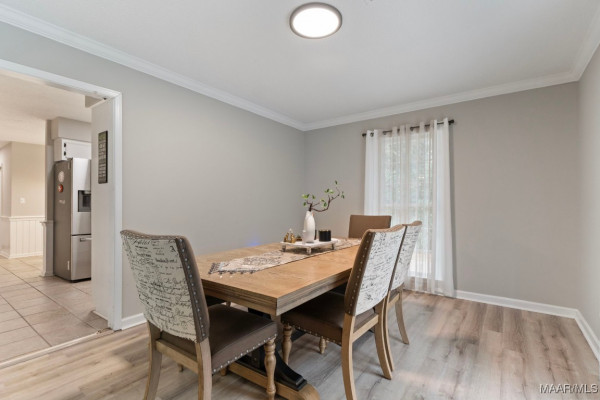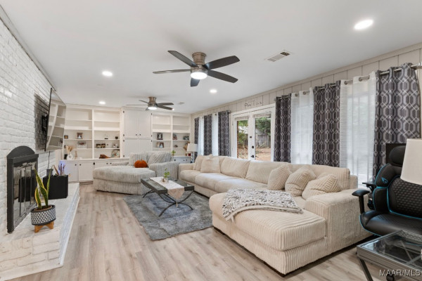 If you head straight from the foyer, you’ll discover a spacious family room with a cozy brick fireplace and stunning floor-to-ceiling built-ins. Tucked just off this room is a charming wet bar/coffee bar complete with a sink, perfect for entertaining or that morning java ritual.
