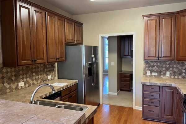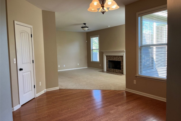 Available to lease by April 1, 2026. Wonderful 4 bedroom, 2-bath house with 2 living areas in Woodland Creek! The home has a living room, a family room, dining room, a well laid out kitchen with a dining area and a utility room. Other features include high ceilings, fireplace, garage door opener, covered patio and fenced yard.