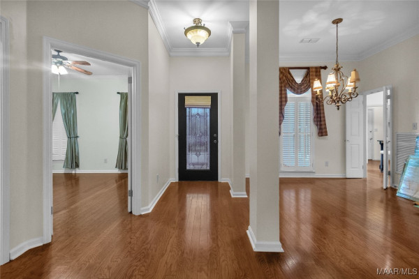 WATER AND GOLF VIEWS on Beautiful Green Chase in Towne Lake! Discover the perfect blend of comfort and scenery in this beautiful 3-bedroom, 2-bath home. Designed with a split floorplan, the layout offers privacy and flow, highlighted by a spacious family room with a cozy gas fireplace ideal for relaxing or entertaining. The primary suite is a true retreat, featuring an updated bath with a luxurious soaking tub, separate shower, dual vanities, and a custom built walk-in closet offering exceptional storage and organization. Enjoy cooking in the warm, inviting kitchen complete with a Wolf gas/electric range, new hood, work island and a breakfast nook. A formal dining room adds elegance for gatherings and special occasions. Step outside to your own backyard oasis with a sparkling salt water pool and stunning lake and golf-front views, creating a one-of-a-kind setting to unwind or entertain. Additional features include a 2-car garage and charming curb appeal, making this Towne Lake home an exceptional find. Towne Lake is so conveniently located just off I-85, Atlanta Hwy and Chantilly Parkway and so close to The Shoppes of Eastchase, restaurants, hospitals and only minutes to Maxwell and Gunter Air Force Bases! Towne Lake is a covenant/HOA community.
