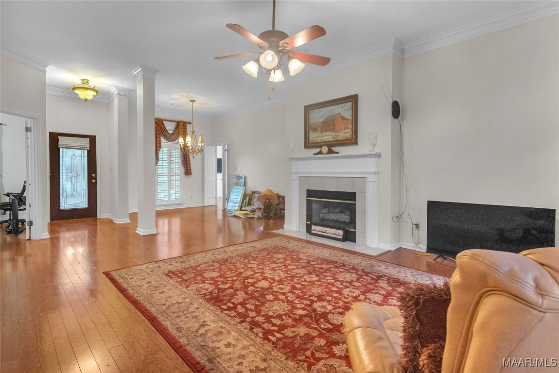 WATER AND GOLF VIEWS on Beautiful Green Chase in Towne Lake! Discover the perfect blend of comfort and scenery in this beautiful 3-bedroom, 2-bath home. Designed with a split floorplan, the layout offers privacy and flow, highlighted by a spacious family room with a cozy gas fireplace ideal for relaxing or entertaining. The primary suite is a true retreat, featuring an updated bath with a luxurious soaking tub, separate shower, dual vanities, and a custom built walk-in closet offering exceptional storage and organization. Enjoy cooking in the warm, inviting kitchen complete with a Wolf gas/electric range, new hood, work island and a breakfast nook. A formal dining room adds elegance for gatherings and special occasions. Step outside to your own backyard oasis with a sparkling salt water pool and stunning lake and golf-front views, creating a one-of-a-kind setting to unwind or entertain. Additional features include a 2-car garage and charming curb appeal, making this Towne Lake home an exceptional find. Towne Lake is so conveniently located just off I-85, Atlanta Hwy and Chantilly Parkway and so close to The Shoppes of Eastchase, restaurants, hospitals and only minutes to Maxwell and Gunter Air Force Bases! Towne Lake is a covenant/HOA community.