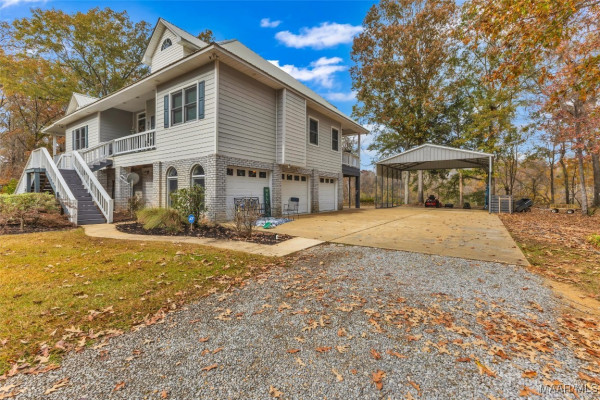 Welcome to your Dream Waterfront Retreat! This spacious 4 bedroom, 3 bath homes sits directly on the beautiful Alabama River, offering sweeping views, peaceful surroundings, and some of the most breathtaking sunrises and sunsets imaginable. Step inside to an open and inviting layout featuring a newly remodeled kitchen on both the main level and the lower level, perfect for cooking, entertaining, or hosting guests. A residential elevator provides easy access between floors, adding convenience and accessibility for all! Enjoy tons of covered porch space, ideal for morning coffee, outdoor dining or sunset gatherings overlooking the water. The property features and irrigations system fed from the river, boasts amazing landscaping, and a very open and spacious lot, giving you plenty of room to relax, entertain, and take in the natural beauty around you. The bottom floor functions as separate living quarters, perfect for guests or multigenerational living. It includes its own living room, bedroom, bathroom with walk in tiled shower, kitchen and laundry area, all with easy access to the outdoors and those gorgeous river views. Outside, a detached boat shed provides excellent storage for watercraft, outdoor equipment, or hobby space-perfect for enjoying riverfront living to the fullest! This property includes an adjacent lot, approximately .80 acres, equipped with a pole barn and RV pad plus a floating dock with direct water access, perfect for boating, kayaking, fishing, or simply enjoying peaceful moments on the river. This one-of-a-kind riverfront estate offers luxury, space, and unmatched amenities-all in a peaceful, breathtaking setting. Come experience the best of Alabama River living!
