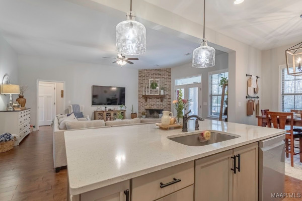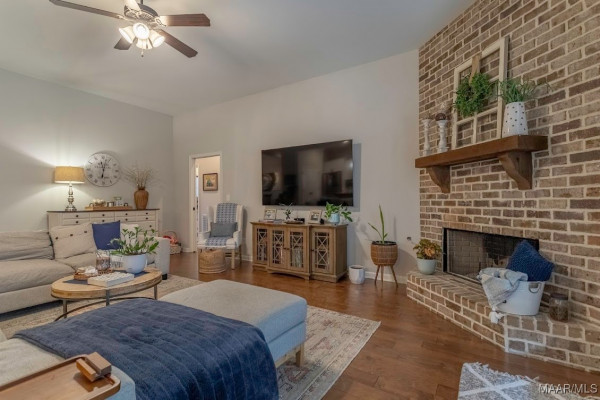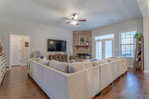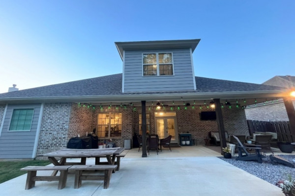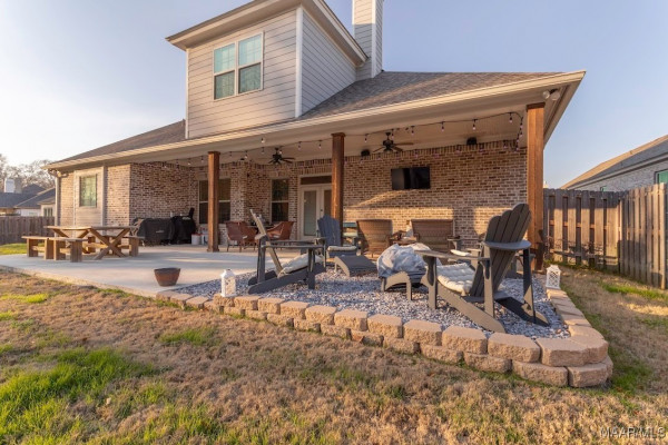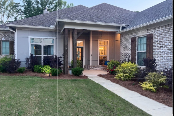 Welcome to this beautiful Lowder New Homes 5 bedroom, 3 bathroom property where your family can come HOME! This gorgeous home built in 2021 features hardwood flooring, quartz countertops, brick backsplash, a brick wood-burning fireplace, a walk-in pantry, and 4 bedrooms all on the main floor. The open floorplan allows seamless entertaining from the kitchen to family room. The upstairs bonus room is extra spacious and has a separate bedroom and bathroom for your convenience. Enjoy the view of the wooded property behind the house from all the windows in the family room and breakfast area. When you step out onto the covered back patio it might feel like country-living. There are several spaces to enjoy your family and friends while listening to nature sing. This home also features a PYLE sound system with Bluetooth on back patio, tankless water heater, sprinkler system, and privacy fence on both sides. Woodland Creek is full of amenities for your enjoyment including a grand clubhouse, outdoor fireplace, resort style pool, fitness center, secured playground, walking trails and a bark park. Don’t wait to make an appointment for your own private tour of the military family-owned treasure!