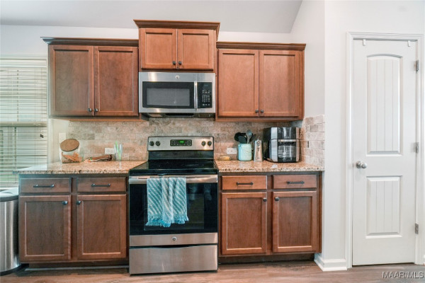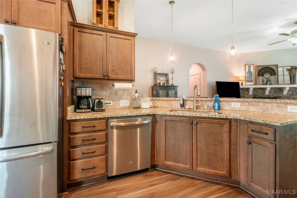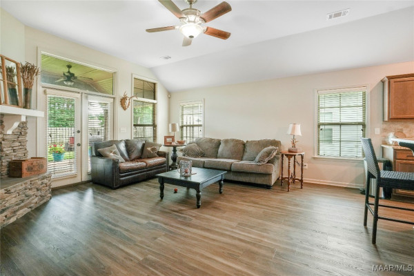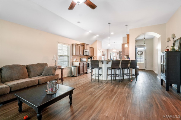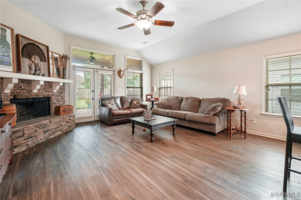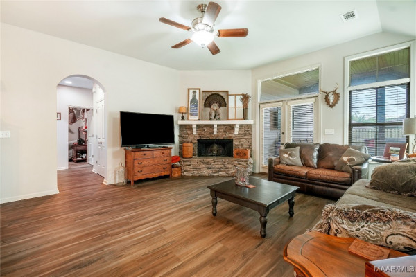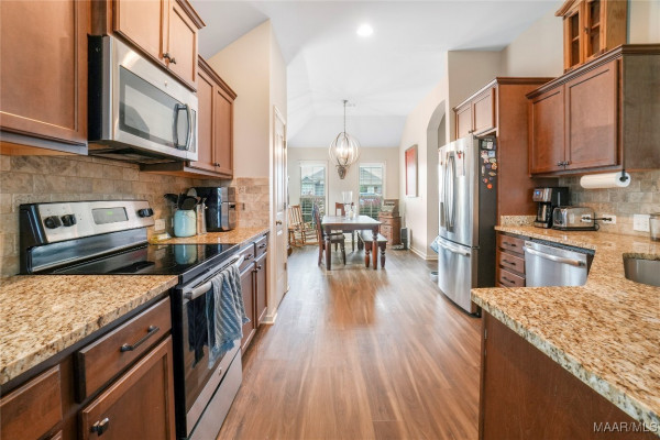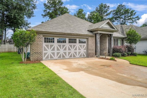 NEW PAINT, LVP FLOORING THROUGHOUT, LARGE BACKYARD. Welcome to 9167 White Poplar Circle an inviting 3-bedroom, 2-bath home in the highly sought-after Pike Road community. This charming brick home features a stylish, craftsman-inspired exterior with a carriage-style garage and covered entry. Inside, you’ll find a warm, open layout with wood-look flooring, a spacious living room with a stone fireplace, and large windows for natural light. The kitchen offers granite countertops, stainless appliances, and rich wood cabinetry.