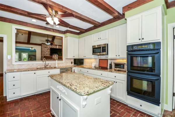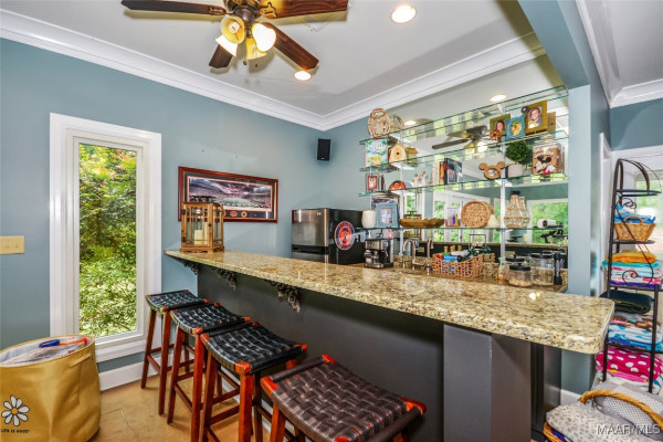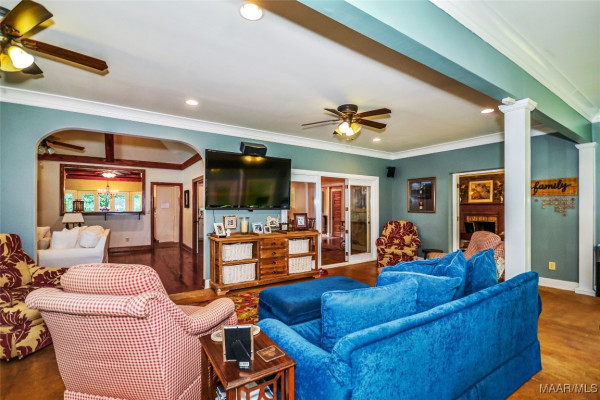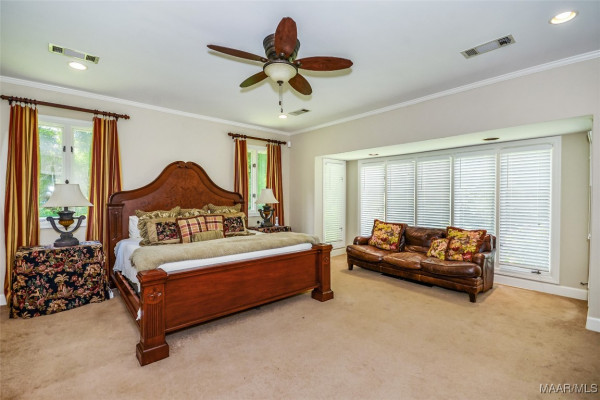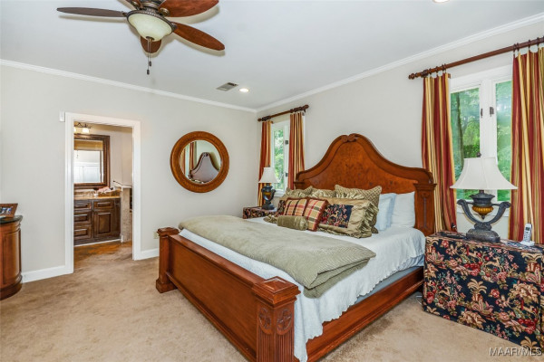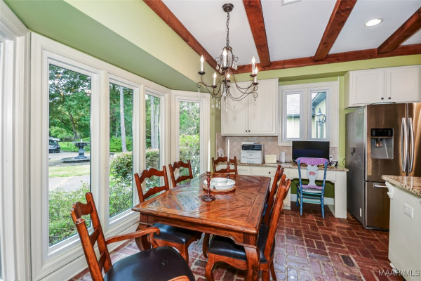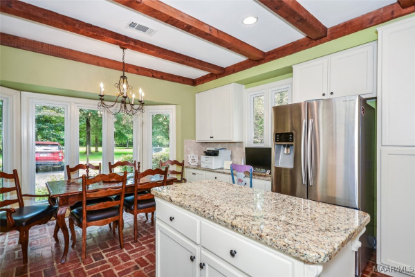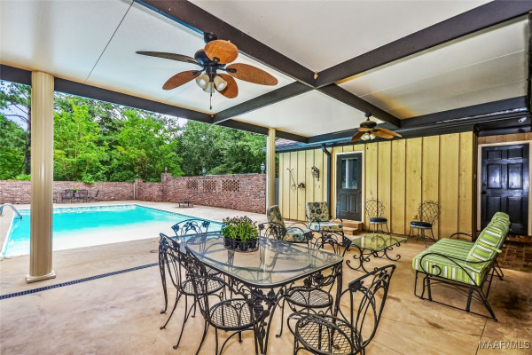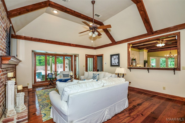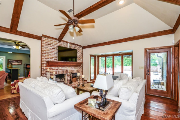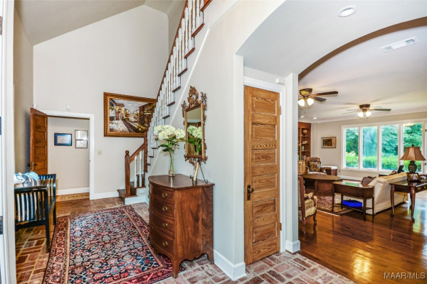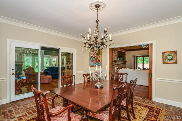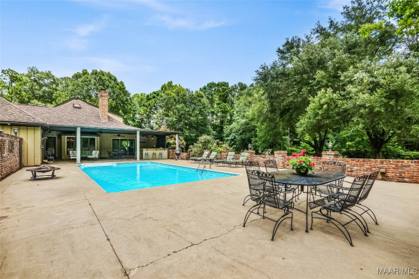 EXQUISITE PIKE ROAD ESTATE SITUATED ON 4.7 +/- ACRE CORNER LOT! As you pull down the circular drive you are greeted by a cast iron fountain and beautiful landscaping. The grand foyer has soaring ceilings, hand made wood brick floors and a chandelier that is sure to catch your eye. The living room has lots of windows and a masonry fireplace flanked by built-in bookcases. The dining room has antique wood pocket doors. The kitchen has granite countertops, a smooth surface cooktop, double ovens and a work island. There is plenty of drawer and cabinet space and a large pantry located in the laundry room. The Butler’s Pantry has additional drawer and cabinet storage for your entertainment pieces and boasts granite countertops and a sink. The den has hand picked 10-12 in. heart pine floors that have recently been redone. There is a masonry fireplace and wood storage area below the original heart pine mantle. There is a half bath off the den for your convenience. The family room has windows everywhere giving you views of the grounds and pool! This room has a great bar area with granite countertops, mirrored shelving and a half bath that is ideal when swimming or entertaining on the patio. The primary bedroom has a sitting area and walk in closet. The main bath has a huge walk in shower with double shower heads. The room off the primary suite is perfect for an office. Three additional bedrooms upstairs with walk in closets and two full baths. Tons of storage closets including floored attic space. The pool area is remarkable with a huge covered patio including an outdoor kitchen with sink, refrigerator, built in gas grill and bar. This property is gorgeous! Come see for yourself, you won’t be disappointed.