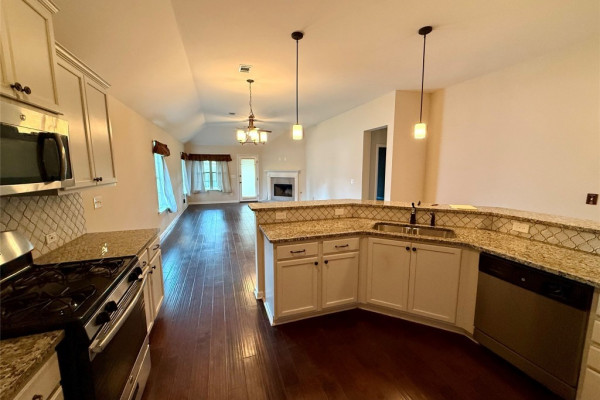 Enjoy every day in this lovely 3 bedroom 2 bath home with a covered porch and NICE backyard. Big kitchen with staggered cabinetry, granite countertops, ceramic tiled backsplash, pantry, and ceramic tile flooring. Hardwood flooring in the family room as well and a coy fireplace! Breakfast bar perfect for entertaining or just grabbing a bite to eat. Private Main bedroom and bath with double sinks, granite countertops, a relaxing garden tub, and a separate shower. Two additional bedrooms share a hallway bathroom. Great family home located in the Pike Road area and schools. Woodland Creek has tons of amenities for your enjoyment-from a resort style swimming pool to a secured playground, to a clubhouse and fitness center. Application fee $50 and 700+ credit score with a good past rental history required, contact agent for details.