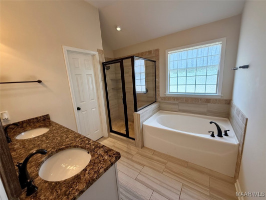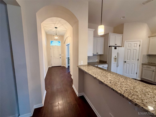 Enjoy every day in this lovely 3 bedroom 2 bath home with a covered porch and NICE backyard. Big kitchen with staggered cabinetry, granite countertops, ceramic tiled backsplash, pantry, and ceramic tile flooring. Hardwood flooring in the family room as well and a coy fireplace! Breakfast bar perfect for entertaining or just grabbing a bite to eat. Private Main bedroom and bath with double sinks, granite countertops, a relaxing garden tub, and a separate shower. Two additional bedrooms share a hallway bathroom. Great family home located in the Pike Road area and schools. Woodland Creek has tons of amenities for your enjoyment-from a resort style swimming pool to a secured playground, to a clubhouse and fitness center. Application fee $50 and 700+ credit score with a good past rental history required, contact agent for details.