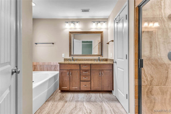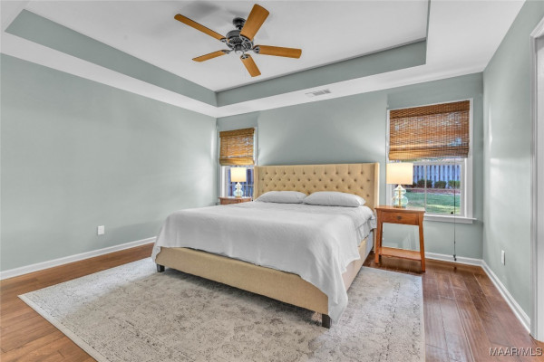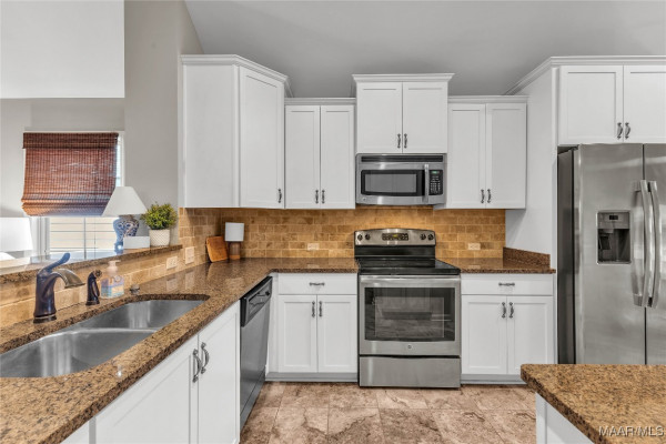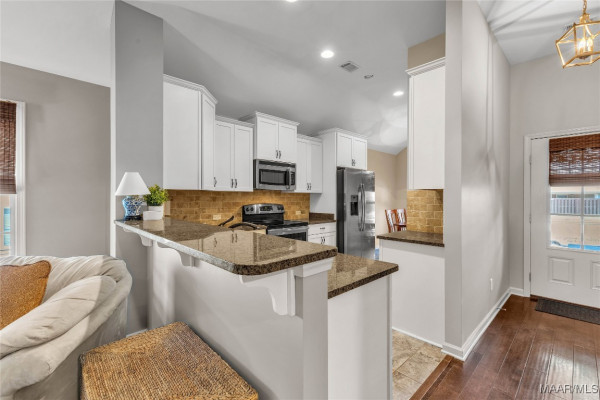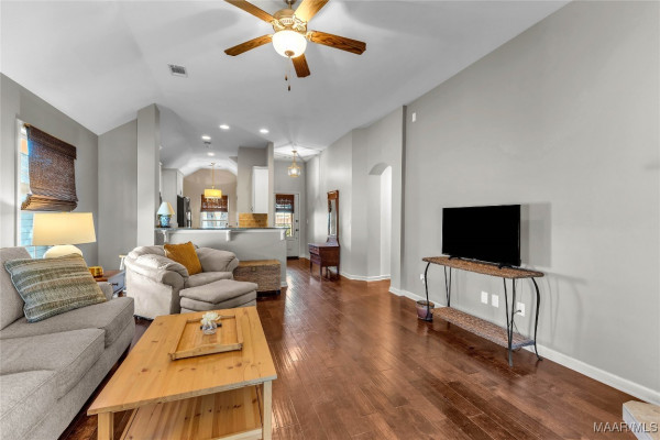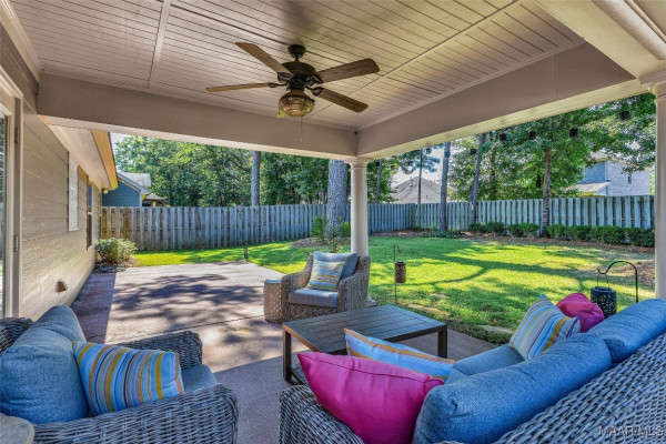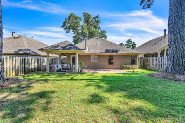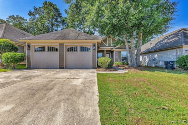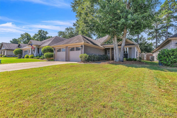 Nestled in the Woodland Creek community of Pike Road, AL, this freshly updated 3-bed, 2-bath home offers a perfect combination of style, comfort, and modern amenities. In 2024, both the interior and exterior received new paint, new carpet was added in the guest bedrooms, and a new water heater was installed, giving you move-in peace of mind. Hardwood flooring flows through much of the main living area, while the kitchen shines with granite counters, tile backsplash, stainless appliances, recessed lighting, and a breakfast bar. The primary retreat boasts dual vanities, a walk-in tiled shower, a garden tub, and a generous walk-in closet. Two additional bedrooms share a full guest bath, and the laundry room opens to the double garage for added convenience. Step outside to a covered patio, extended open patio space, and a fully fenced backyard shaded by mature trees — ideal for relaxing or entertaining. Living in Woodland Creek, a thoughtfully planned community, gives you access to a resort-style pool, clubhouse, fitness center, playgrounds, walking trails, and a dog park. As part of Pike Road, you’ll enjoy quiet, tree-lined streets, a strong sense of community, and easy access to Montgomery and major highways. Another Plus? It’s zoned for Pike Road School system which is known for its innovative, student-centered approach to education. Don’t let this updated, charming home slip away — schedule your showing today and experience the best of Pike Road living!