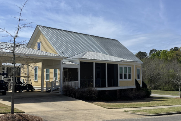 Open kitchen overlooking dining and great room with custom cabinets, granite topped work island, stainless steel appliances and under cabinet lighting. The kitchen pantry has plywood sheathing under drywall to provide added storm protection in pantry and under stairs. Beautiful built-in cabinets and shelves in great room with recessed lighting everywhere. Dining area with lots of windows and custom lighting. Hardwood flooring in public areas and carpet in the bedrooms. Laundry with room for extra refrigerator, sink and storage. Desk/office area off kitchen leading to owner’s suite and laundry. His and hers closets, separate vanities, soaking tub and separate shower in owner’s bath. Two guest suites and guest bath off living room. High efficiency heat pump and gas tankless water heater provide comfort efficiently. Lovely single story plan with flexibility to grow into 2800-3000 sf home.